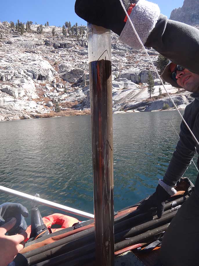 To do the research, Sickman and his colleagues collected sediment cores from about 50 lakes in the Sierra Nevada. The researchers hiked to the lakes and used rafts to access the deepest part of the lake. They lowered corers into the sediments. When retrieved, the sediment cores were cut into 1-centimeter-thick slices. The slices were then subjected to chemical analyses to determine the age of the individual slices. The researchers then counted the carbonaceous particles and diatoms (small phytoplankton with silicon bodies) under a microscope.