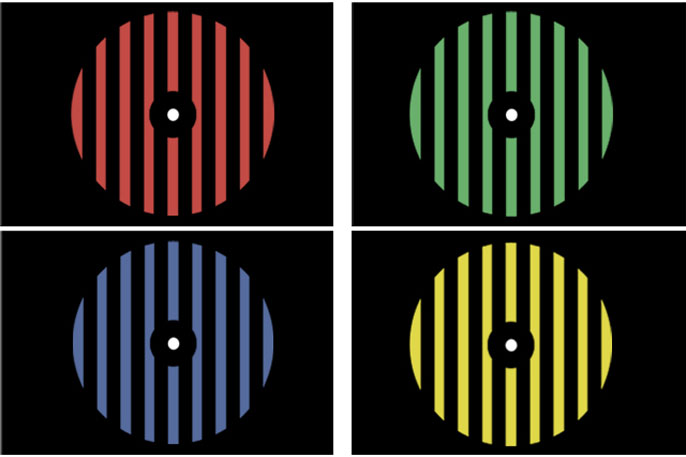 The researchers tested the technique on 17 undergraduate and graduate students in Japan. Participants were seated in a functional magnetic resonance imaging, or fMRI, scanner and shown patterns of vertical lines in four colors — red, green, blue and yellow. The blue and yellow images were always shown without shocks, but the red and green patterns were often accompanied by a small electrical shock administered to their feet.