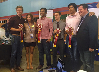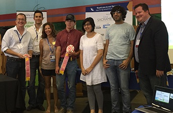 Second place was awarded to Sense and Protect, a mobile task-management app that connects to climate sensors to protect farmworkers' health and enhance their productivity. Sense and Protect team members Dhrubajyoti Das, Alex Avalos, Anthony Johnson and Peter Swanson share $4,500.