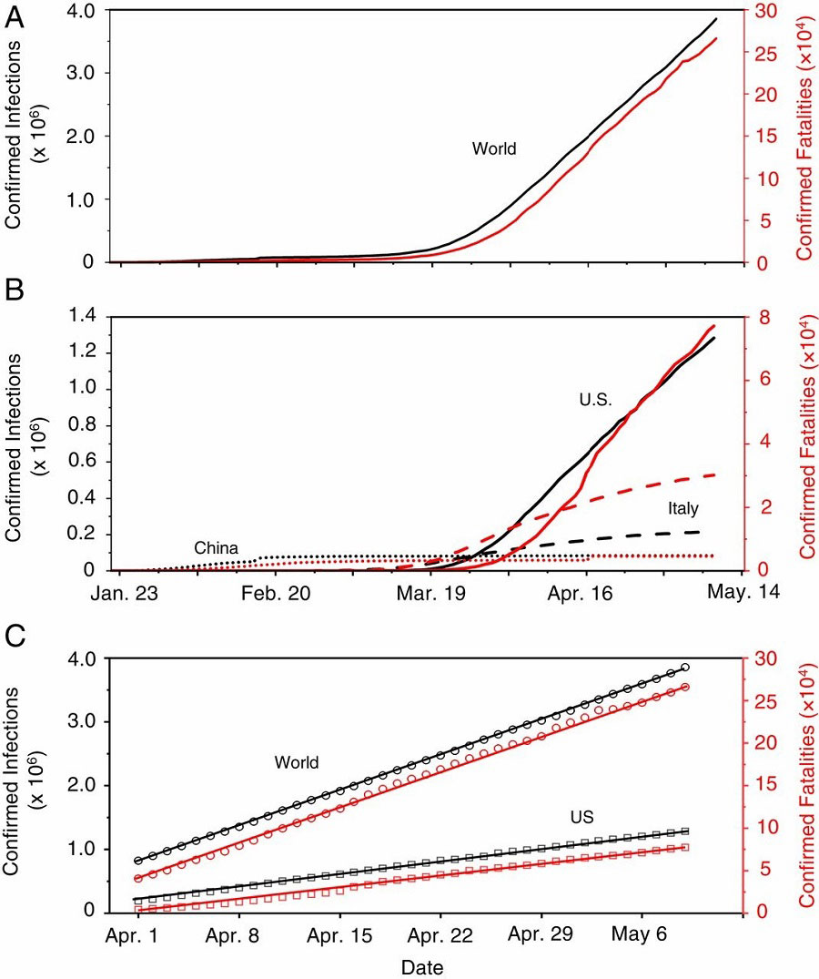 The scientists quantified the effects of face-covering by projecting the number of infections based on the data before Italy and New York City implemented the use of face masks on April 6 and April 17, respectively (see Figure 2A). The inability of social distancing, quarantine and isolation alone to curb the spread of COVID-19 is also evident from the linearity of the infection curve prior to the onset of the face-covering rule in Italy and in New York City on those dates (see Figure 2 B and C).