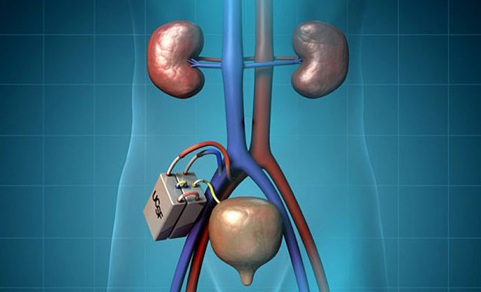 The artificial kidney being developed by Roy and Fissell is designed to be connected internally to the patient’s blood supply and bladder and implanted near the patient’s own kidneys, which are not removed.
