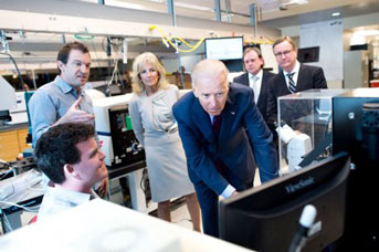 The Bidens’ visit was the latest stop on a national listening tour to meet with scientists to learn how they can help improve the process of cancer research, as well as meet with cancer patients and survivors to help improve care. Since President Barack Obama announced that the vice president would be leading this cancer initiative in January’s State of the Union address, Biden said he’s received overwhelming support for this effort, for which the White House has given $1 billion in initial funding.