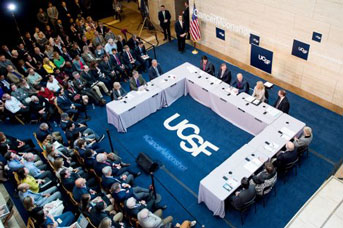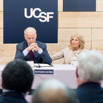 Vice President Joe Biden and his wife Jill Biden, Ph.D., visited UC San Francisco on Saturday to meet with top cancer experts as part of the National Cancer Moonshot initiative to develop new approaches that fast-forward the development of novel therapies.