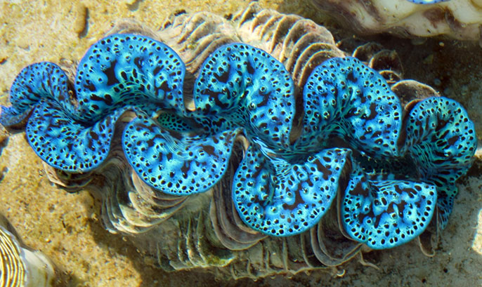Appearing in the journal Optica, the study focuses on two species of giant clam and the symbiotic photosynthetic algae with which they cohabitate. Iridescent cells on the inside edge of the clams’ shells where the algae live produce a dazzling array of colors, including blues, greens, golds and — more rarely — white, which the animals mix in different ways.