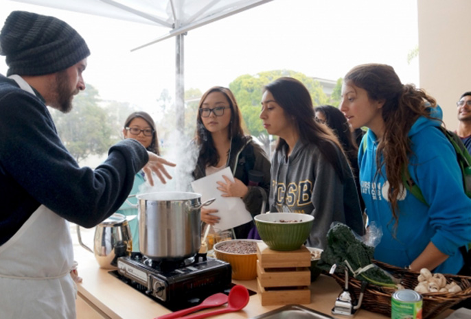 An impressive cross-section of the campus community is already involved in the new endeavor. The program curriculum was conceived and designed collaboratively by representatives of, among others, the UC Global Food Initiative, UCSB Sustainability, Financial Aid & Scholarships, the Associated Students Food Bank, Student Health, Environmental Affairs Board, UCen Dining, UCSB Health & Wellness, Housing & Residential Dining Services and the Isla Vista Food Co-op.
