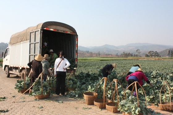 The cooperatives enabled the farmers to create a system for transferring and depositing harvests in warehouses for distribution and sale. Farmers collaborated to identify suitable food crops to match the local soil quality, climate and water availability. For example, the Hongta District cultivated grapes and white mushrooms — mushrooms in particular require little water and land. Chengjiang planted popular but non-indigenous gherkins, cauliflower, broccoli and peas. Eshan County, which has dams, planted moisture-loving arrowroot in wet fields.