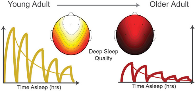 For their review of sleep research, Walker and fellow researchers Bryce Mander and Joseph Winer cite studies, including some of their own, that show the aging brain has trouble generating the kind of slow brain waves that promote deep curative sleep, as well as the neurochemicals that help us switch stably from sleep to wakefulness.