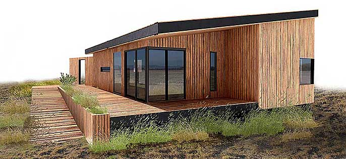 The home combines public and private spaces in three linear zones: Two climate-controlled living spaces are separated by an enclosed deck. The zones act as climate buffers that maximize passive cooling in summer and passive heating in winter. It will also feature “smart home” technology that aligns the home's needs with the electrical grid, communicating with the resident and power provider to manage energy systems more effectively.