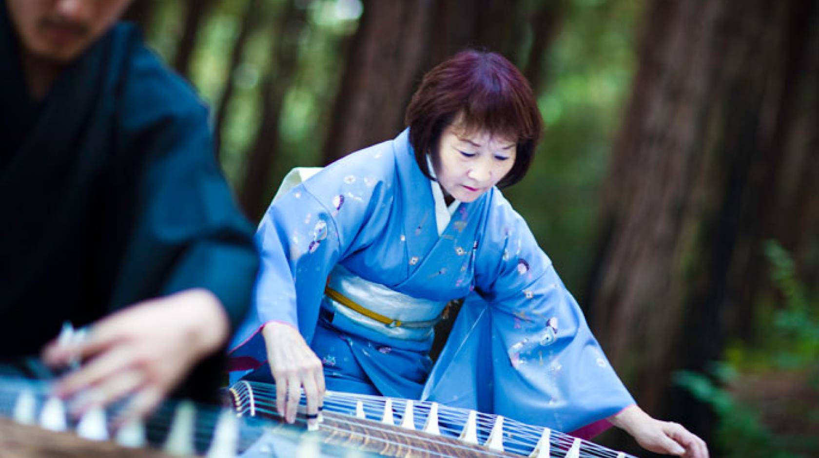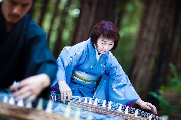 “The arts helped them to survive,” says Muramoto, a Berkeley alum who regularly plays her koto at campus events, notably the annual memorial service, and on less solemn occasions has been known to pluck out a mellifluous version of the Cal fight song.