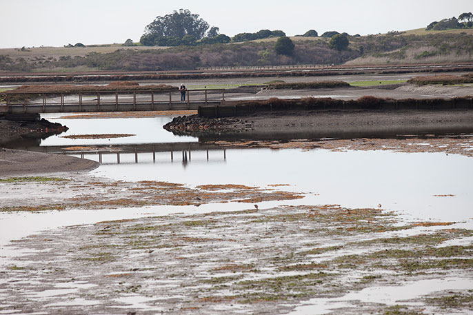 Over the four decades covered by the study, Elkhorn Slough has received steadily increasing influxes of nutrients, mostly from fertilizer in runoff from agricultural fields in the surrounding watershed and the Salinas Valley. But Hughes said that dissolved oxygen levels have been highly variable over the same time because periods of high rainfall can effectively flush out of the estuary the accumulated organic matter generated by excessive nutrients.
