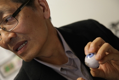 These days when visitors inquire about his work, Liu pulls a toy eyeball out of his coat pocket and points to a tiny, round battery glued to an area over the retina — his modest approximation of the computer chip he conceived. The Argus II technology is now available to patients through the company Second Sight, which helped the DOE fund the research. One patient, Barbara Campbell, shared her experience in a New York Times video story when the FDA gave the device a green light.