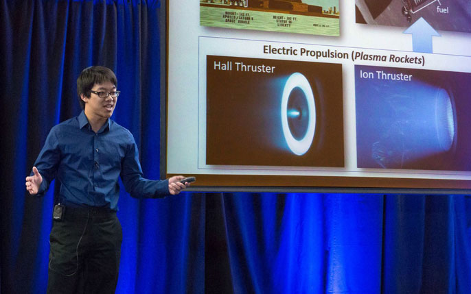 Li, in his second year of study at UCLA, is a member of mechanical and aerospace engineering associate professor Richard Wirz’s research group. He graduated from UC Berkeley in 2014 with a bachelor’s degree in physics and astrophysics. In 2015, he received a National Defense Science and Engineering Graduate (NDSEG) Fellowship, a highly competitive three-year award, from the U.S. Department of Defense.