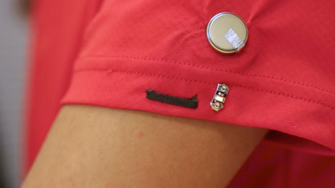 For example, nanoengineers printed a self-healing circuit on the sleeve of a T-shirt and connected it with an LED light and a coin battery. The researchers then cut the circuit and the fabric it was printed on. At that point, the LED turned off. But then within a few seconds it started turning back on as the two sides of the circuit came together again and healed themselves, restoring conductivity.