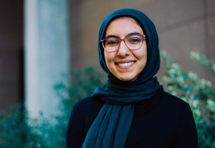 Ibrahim is majoring in environmental science & policy — an interdisciplinary program that links coursework in the School of Physical Sciences and the School of Social Ecology. Since January 2020, she has been a student fellow with the Carbon Neutrality Initiative, an effort to bring the University of California system to net-zero carbon emissions by 2025. Student fellows from each UC campus, as well as from UC Agriculture and Natural Resources and the UC Office of the President, work on site-specific projects.