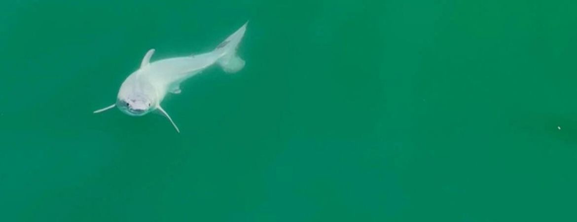 Great whites, referred to only as white sharks by scientists, are gray on top and white on the bottom. But this roughly 5-foot-long shark was pure white.