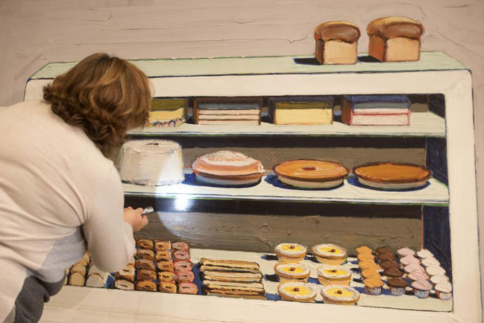 But the frostings and meringues — visibly chunky, which is an effect created by mixing a special medium and paint — was a mirage of sorts. It was ordinary paint made delicious-looking by artist Wayne Thiebaud, renowned painter and founding art faculty of UC Davis.