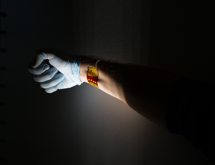 On a recent warm day in San Diego, Timothy O’Connor wrapped a Band-Aid-sized strip of solar cells around his wrist and walked outside into the sunshine. He plunged his fingers between his wrist and the solar strip and repeatedly twisted and crumpled the solar cells. He repeated the motion 1,000 times.