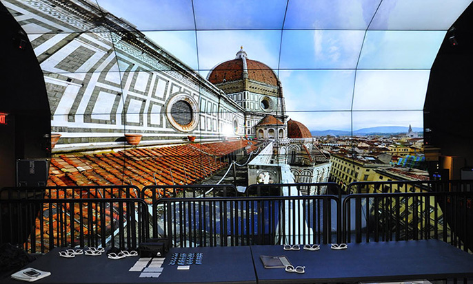Franco Lucchesi, president of Opera Del Duomo Firenze, recently visited CISA3 in San Diego to see the data that the team obtained come to life in its advanced visualization environments, including the WAVE, a 70 megapixel resolution virtual reality environment that provides an unprecedented degree of presence (the feeling of "being there"). Remarking that CISA3’s cultural heritage engineering methodology is uniquely positioned to provide important insights into the understanding and preservation of these monuments, Lucchesi invited the UC San Diego team to further expand its collaboration with the Opera Del Duomo.