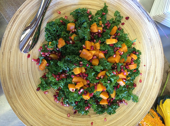 At a Food Day celebration Wednesday at Brown’s, the UC Berkeley eatery formerly known as Pat Brown’s Grill, students, faculty, staff and a farmer from Free Spirit Farm in Winters who supplies Cal Dining with butternut squash got a taste of items from the café’s new menu and a glimpse of the renovated space.