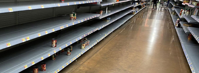 The scenes are among the most haunting from the COVID-19 pandemic: Supermarkets where shoppers in protective masks face depleted shelves; consumers in the midst of panic buying, piling their carts with paper products, meats, eggs and gallons of water.