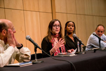 In the panel discussion that followed, UCSF Executive Vice Chancellor and Provost Dan Lowenstein, M.D., began the conversation saying quietly that he was most struck by Ajax’s failure to see or feel the love that was all around him from his wife, son and comrades in arms.
