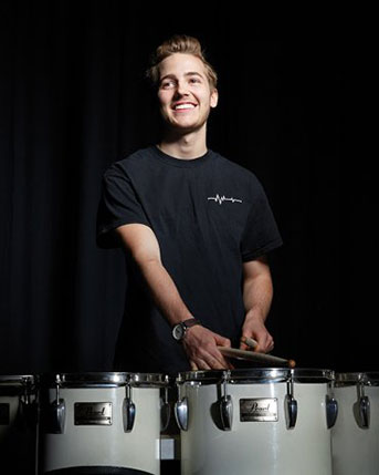Oliver Bishop has sandy blond hair styled like a 1940s screen idol’s and a scruffy beard and sideburns that frame his wide smile. A senior in high school, he is busy – singing with his school’s award-winning jazz choir, leading the marching band, teaching music lessons. Outgoing and popular, he was elected homecoming king in the fall.