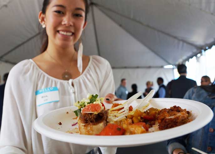 “The wonton appetizer with shitake mushrooms and cream cheese? Amazing,” said Samantha Chavez, a first-year Gaucho who attended on the invitation of her friend, fellow freshman and Instagram contest winner Karla Jerez. “Also the pulled pork, oh, and the turkey-fennel salad. It’s all really, really good. Really. My friends are all so jealous that Karla chose me to come.”