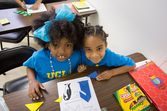 Participants in the program – ranging in age from 4 to 14 – engage in three weeks of math and three weeks of science instruction. After starting the day with a UCLA cheer, students break into age-based groups of 15-20 students. Teachers in the program are graduates of training programs offered through the UC-led California Subject Matter Project, which brings together classroom teachers with educators who are conducting research into how kids learn.