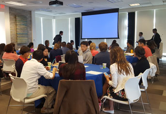 Participants describe the dinners as a wedding reception with musical chairs: Students sit down to a meal with Ph.D. alumni from a variety of professions. After every course, the alums switch tables. At the end of the event, the students have made a number of professional connections — and gotten a better sense of the possibilities open to them.