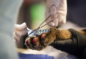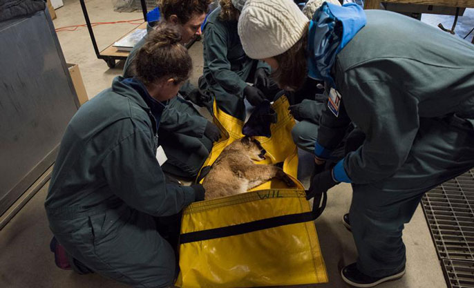 The mountain lion cub received a fresh tilapia bandage Monday (Jan. 8), applied by Peyton with the help of UC Davis veterinary students.