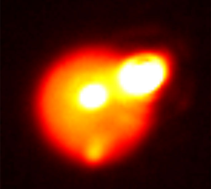 “We typically expect one huge outburst every one or two years, and they’re usually not this bright,” said Imke de Pater, professor and chair of astronomy at the University of California, Berkeley, and lead author of one of two papers describing the eruptions. “Here we had three extremely bright outbursts, which suggest that if we looked more frequently we might see many more of them on Io.”