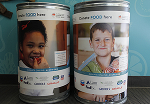 “It’s a very safe and secure way to donate,” she says, “and for every $1 donated, we get $5 worth of purchasing power for our most needed items, which can’t be always be placed in a barrel — produce, milk, eggs and other protein products.”