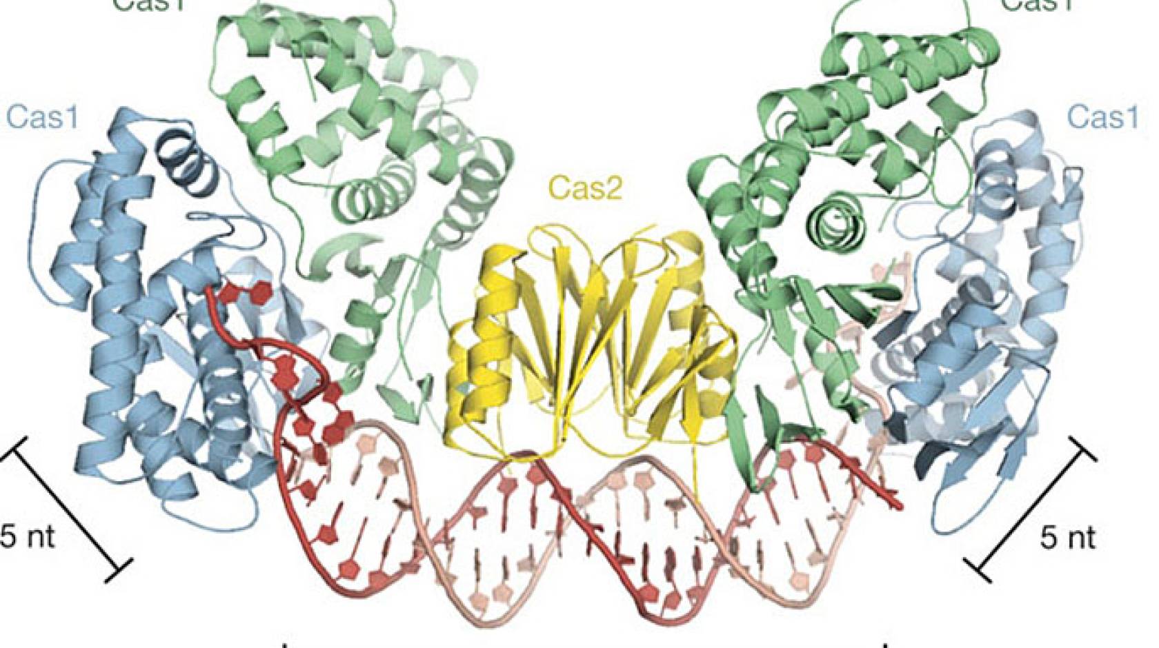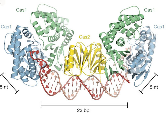 “By studying X-ray crystal structures of Cas1 and Cas2 enzymes in Escherichia coli, we can now see how foreign DNA is manipulated and bent upon being captured by Cas1 and Cas2,” Doudna says. “Knowing how Cas1 and Cas 2 function in bacterial genomes provides us with a possible mechanism for studying or correcting problems in human genomes.”