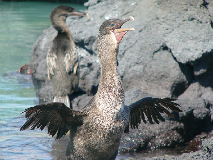 The flightless Galapagos cormorant is one of a diverse array of animals that live on the Galapagos Islands, which piqued Charles Darwin’s scientific curiosity in the 1830s. He hypothesized that altered evolutionary pressures may have contributed to the loss of the ability to fly in birds like the Galapagos cormorant.