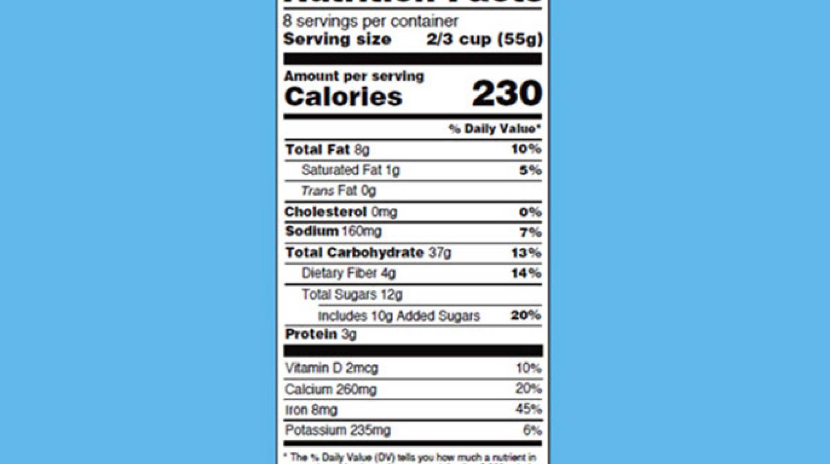 The new label will list the amount of added sugar in a product, both in grams and as a percentage of the daily recommended allowance.