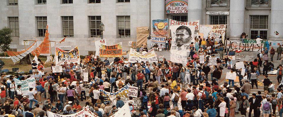 In December of 1984, a handful of UC Berkeley students walked off campus and down to the administrative offices for the whole University of California system, determined to secure a meeting with the chancellor and president.
