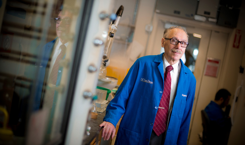 So it might come as a surprise that one of the most beloved professors on campus is a chemist who’s taught this gut-wrenching course to anxious sophomores each fall for the past four decades and yet still manages to earn nearly perfect scores on his teaching evaluations from students. This month, Charles Perrin begins his 50th year at UC San Diego. And as you might expect from someone who exudes such passion for teaching and research, the trim and spry 74-year-old professor of chemistry and biochemistry has no plans to retire anytime soon.