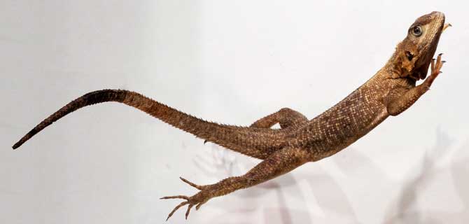 University of California, Berkeley, biologists and engineers including undergraduate and graduate students studied how lizards manage to leap successfully even when they slip and stumble. They found that lizards swing their tails upward to prevent them from pitching head-over-heels into a rock.