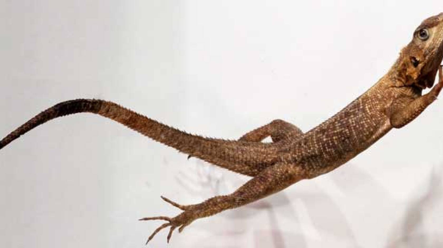 They coaxed the lizards to run down a track, vault off a low platform and land on a vertical surface with a shelter on top. When the friction on the platform was reduced, lizards slipped, causing their bodies to potentially spin out of control.