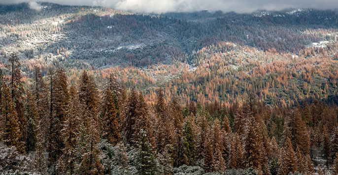 The most extreme drought event in hundreds of years caused a catastrophic die-off of the Sierra Nevada’s mature trees in 2015-2016.