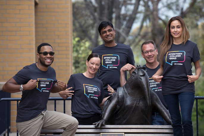 Professors at the University of California, Irvine, in an effort to support the 60 percent of students who are the first in their families to go to college, will don distinctive shirts and buttons during Welcome Week, identifying themselves as first-generation graduates.