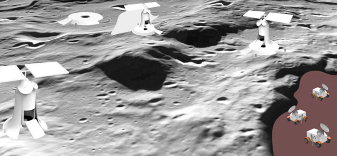 Depending on where the best ice reserves are, we might need to build several small robotic moon bases. Each one would mine ice, manufacture liquid propellant and transfer it to passing spacecraft. Our team developed plans to accomplish those tasks with three different types of rovers. Our plans also require a few small robotic shuttles to meet up with nearby deep-space mission vehicles in lunar orbit.