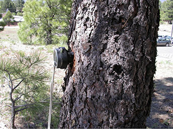 They are applying the results of nearly a decade of acoustic research in an unconventional collaborative effort to stop bark beetles from tunneling through the living tissue of weakened, drought-stressed pine trees.