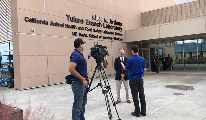 The California Animal Health and Food Safety Laboratory System, run by the UC Davis School of Veterinary Medicine, has opened a fourth lab — this one near Tulare, midway between Fresno and Bakersfield. The School of Veterinary Medicine operates the lab system for the state, to protect animal health and performance, and safeguard public health and the food supply.