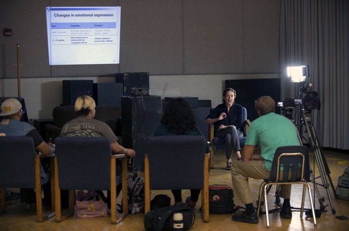 The class features weekly lectures by faculty fellows of UC Irvine’s Center for the Neurobiology of Learning & Memory, including world-class neuroscientists James McGaugh, Gregory Hickok and Elizabeth Loftus. They address topics such as how to efficiently “create” memories for characters, how characters would realistically respond to onstage stimuli based on these memories and how to manipulate emotions physiologically — for instance, hanging the head and starting to cry.