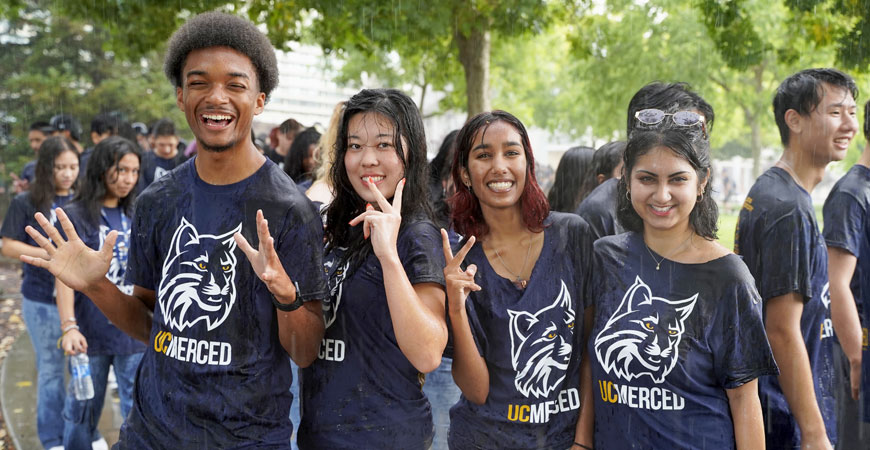 Spirits were high and futures bright while all else was soaked in a summer storm that made Tuesday morning’s Scholars Bridge Crossing, UC Merced’s traditional greeting to new students, a welcome unlike any before.