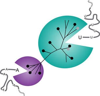 The UC Berkeley researchers subsequently searched databases of bacterial genomes and found 10 other Cas13a-like proteins, which they synthesized and studied to assess their ability to find and cut RNA. Of those, seven resembled the original Cas13a, while three differed in where they cut RNA. RNA, which serves many functions inside the cell, including as messenger RNA — working copies of DNA — consists of four different nucleotides: adenine, cytosine, guanine and uracil.