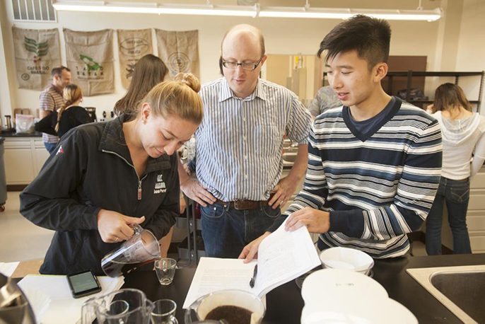 The Coffee Center builds upon “Design of Coffee,” a popular course developed by Ristenpart and Kuhl in 2012 to better engage a diverse population of students and stoke excitement around coffee and engineering. The undergraduate class, now offered every quarter, enrolled more than 1,500 students during the 2015-16 academic school year. “Design of Coffee” also was voted the best course on campus in 2015 and has the highest enrollment of any elective course offered at UC Davis.