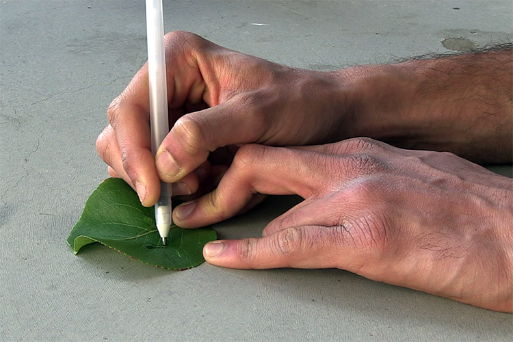 Skin and leaves aren’t the only media on which the pens could be used. Researchers envision sensors drawn directly on smart phones for personalized and inexpensive health monitoring or on external building walls for monitoring of toxic gas pollutants. The sensors also could be used on the battlefield to detect explosives and nerve agents.