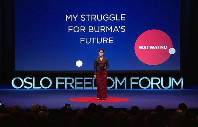 Nu has spoken at human rights forums around the world, including the Oslo Freedom Forum last May. She recently helped persuade the United Nations to conduct a fact-finding mission in Burma — though she lobbied for a more intensive Commission of Inquiry.